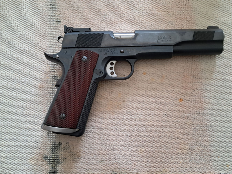 Biete für einen Sportschützenbruder eine wenig geschossene Les Baer Kaliber 45 ACP in 6 Zoll an. Die Waffe hat wird verkauft wegen Reduzierung der sportlichen Aktivitäten. Wie aus den Bildern ersichtlich, befindet sich die Waffe in einem topgepflegten Zustand. Die Präzision ist wie bei Les Baer üblich, sehr gut. Sollten weitere Bilder gewünscht werden, bitte melden. Die Lieferung erfolgt mit Koffer.