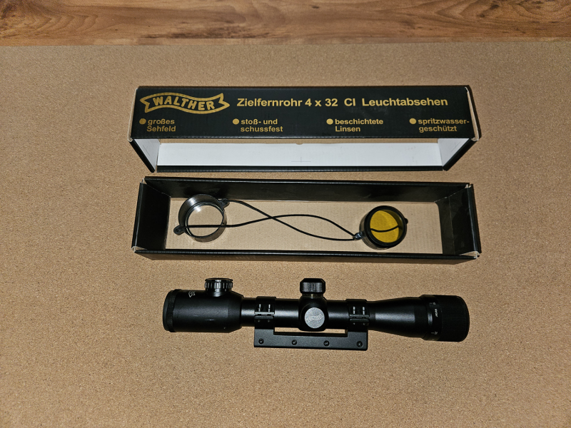 Zum Verkauf kommt hier ein Walther Zielfernrohr 4x32/CI mit Leuchtabsehen