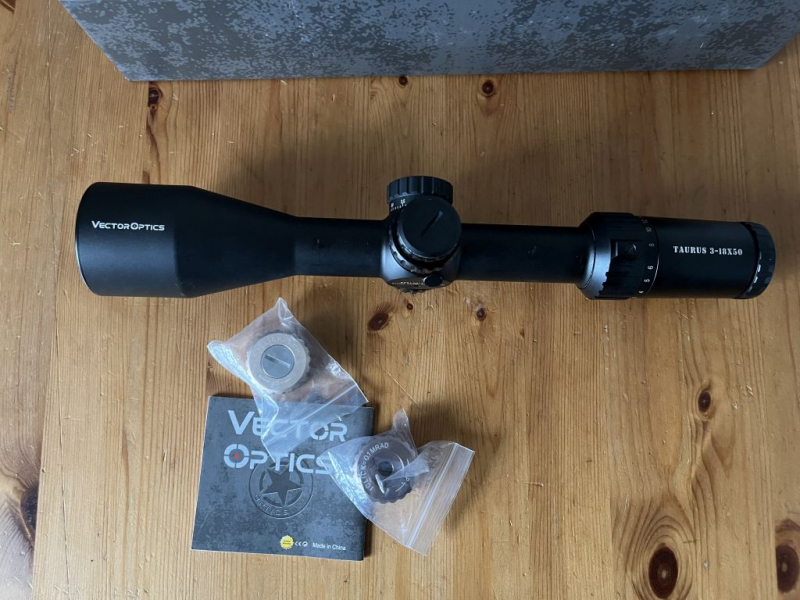 hier ein Zielfernrohr Vector Optics 3-18x50 mit Parallaxenausgleich und wechselbaren Verstellturmbuttons.
