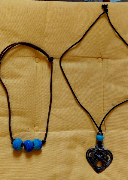 2 schöne Halsketten für die Hobbyisten. Die Kette mit dem verschlungenen Herz ist aus Metall und ca. 5 cm breit.