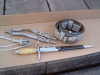 Der Dolch hat die Nummer 55907 eingeschlagen. Der Hersteller (Rückseitiges Zeichen) sollte Eisenach sein. Dolchklinge spiegelblank. Der Drücker funktioniert einwandfrei und hält den Dolch fest in der Stahlblechscheide, Scheide magnetisch. Griff ohne Risse. Das Gehänge hat ganz leichte Lagerspuren. Die Troddel sieht neuwertig aus. Die Feldbinde/ Offizierskoppel ist auch noch gut erhalten. Die Silbergespinste sind mit grauem Stoff hinterlegt. Das Set wurde zusammen so aufgefunden und ist original.