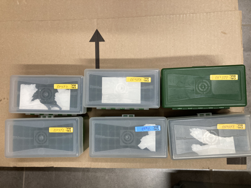 5 Patronenboxen mit Klappdeckel für große Kalbier wie .30-06 / 8x57 usw... .