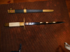 Hat ordentlich Patina, fliegt warscheinlich seit Jahrzehnten im Keller rum. Klinge ist ganz ok, Griff und Scheide können sicher nochmal poliert werden.