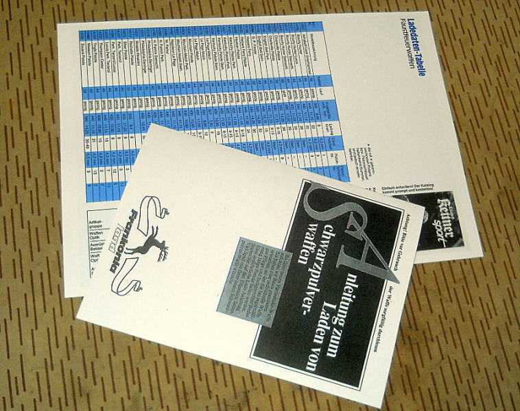 ...Beschreibung: ...2 Schwarzpulver-Ladedatenblätter von Frankonia u. Kettner für Vorderlader Pistolen u. Gewehre ... vermutl. 80-er/90-er Jahre