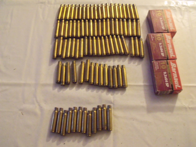 ich meine, das die Hülsen schon alle wiedergeladen waren, z.T. vom gewerblichen Wiederlader. Ungereinigt, z.T. mit einer Lee Universal Ausstoßer Matrize entzündert. 74 RWS, 12 DWM Hülsen. ((((( Weiterhin 29 Barnaul Hülsen, in 3 Schachteln, ich meine Stahlhülsen mit Berdan Zünder, einmal als Fabrikpatrone abgeschossen.)))) Versicherter Versand innerhalb der BRD vorgesehen, Ausland natürlich teurer.