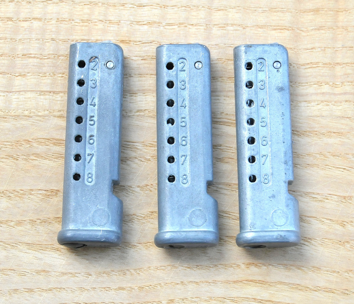 Angeboten werden drei originale Magazine für das Luftgewehr Haenel 310, Kapazität jeweils 8 Schuss.