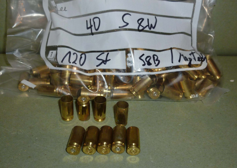 120 Hülsen des Kalibers .40 S&W. Es sind insgesamt 120 Hülsen der Firmen S&B und Magtech.