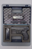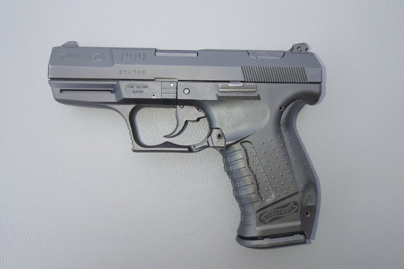 Sie bieten auf eine gebrauchte Walther P 99 AS im Kaliber 9 mm Luger. Die Bezeichnung AS steht für "Antistress" d. h.: Beim Fertigladen wird der Verschluß vorgespannt. Wird die Waffe zwischendurch mit dem Drücker auf dem Schlitten entspannt, kann der Verschluß wahlweise durch Zurückziehen des Schlittens (ca. 1 cm) oder ebenso durch einen einzelnen per Double Action abgegebenen Schuss erneut vorgespannt werden. Erster Schuß: Nach dem Fertigladen Single Action, falls zwischendurch enspannt wurde, Double Action. "Antistress" bedeutet einen längeren Abzugsweg beim ersten Schuß. Bei weiteren Schüssen: Single Action (Double Action falls zwischendurch der Entspanndrücker betätigt wird). Den gespannten Zustand des Schlagstückes kann man an der rückwärtigen Seite am roten Signalstift erkennen. Den Ladezustand erkennt man an der Auszieherkralle. Die Waffe hat folgende Abmessungen: Länge 180 mm, Höhe 102 mm, Breite 32 mm. Die Magazine fassen 15 Patronen. Zum Lieferumfang gehören der Plastikkasten, 2 Reservemagazine, 2 unterschiedliche Griffrücken sowie ein Putzstock. Die P 99 wird in folgenden Bundesländern als Polizeiwaffe eingesetzt: Bremen, Hamburg, Schleswig-Holstein, Niedersachsen, Nordrhein-Westfalen und Rheinland-Pfalz. Einsatzländer sind auch: Dänemark, Finnland, Großbritannien, Irland, Kanada, Maleysia, Niederlande, Polen und Spanien. Dieses ist ein Privatverkauf, keine Garantie oder Rücknahme. Kein Versand ins Ausland!