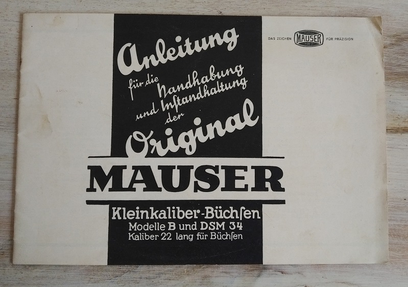 Sie bieten auf eine extrem seltene, original Bedienungsanleitung aus der Zeit des Dritten Reiches, eine gesuchte Rarität für den Mauser- und Wehrsportgewehr-Sammler : >Anleitung für die Handhabung und Instandhaltung der Original MAUSER Kleinkaliber-Büchsen Modell B und DSM 34 Kaliber .22 lang für Büchsen<. 22 Seiten, bebildert. Gedruckt 1941 (3/41). Umschlag gedunkelt, etwas verschmutzt, die beiden Heftklammern mit Korrosion, sonst sehr guter Zustand für das Alter, siehe Photos.