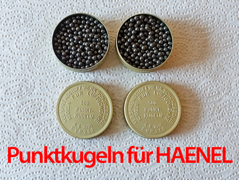 Biete hier 2 Dosen (a 500) gesamt 1000 Stück, Punktkugeln Schönebeck DDR 4,4mm für Luftgewehre der DDR HAENEL 310-9 Serie an. Diese Punktkugeln sind extra für diese Luftgewehre entwickelt worden. Es gibt für diese Waffen nichts Besseres. Kugeln sehr gut erhalten, Blei noch glänzend nicht angelaufen. (Siehe Bild) Versand versichert. kein PayPal auch Abholung nach Absprache möglich. Käufer trägt Versandspesen. Für den privat verkauften Artikel übernehme ich keine Gewährleistung im Sinne der neuen EU-Richtlinien. Mit Kauf der Ware erklären Sie sich ausdrücklich damit einverstanden, auf die Garantie oder Gewährleistung zu verzichten. Es besteht keinerlei Widerrufs- und Rückgaberecht (§312dAbs.4Nr.5BGB) KEIN internationaler Versand. 29.03