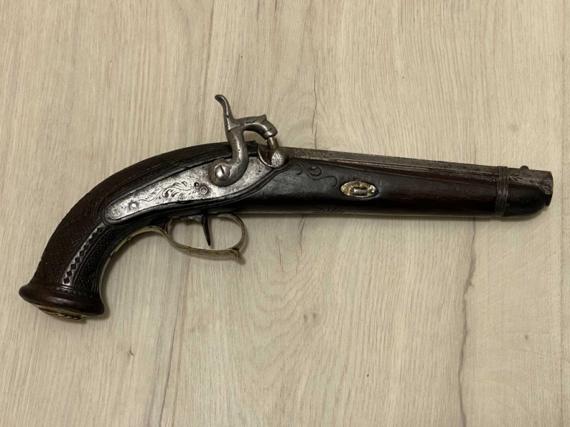 Historische Perkussionspistole, Alter und Herkunft unbekannt.