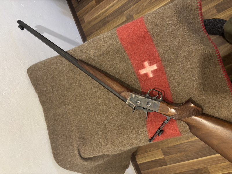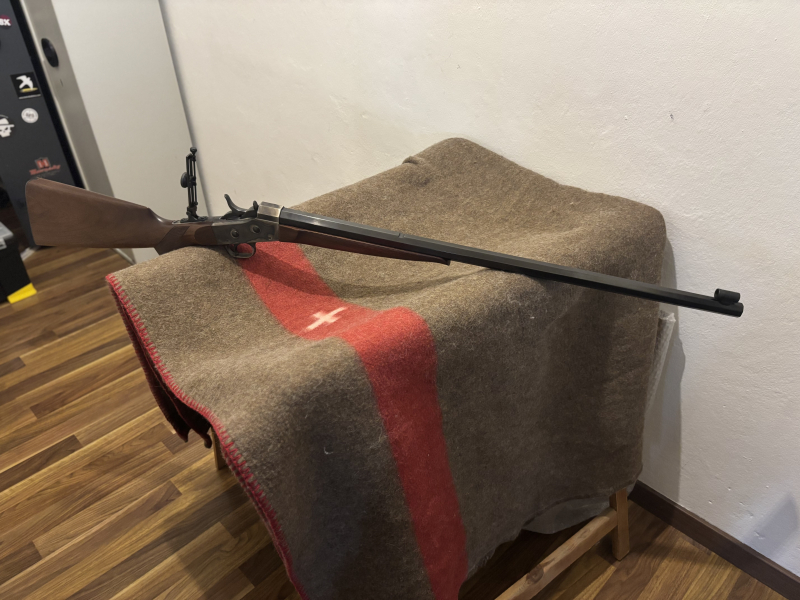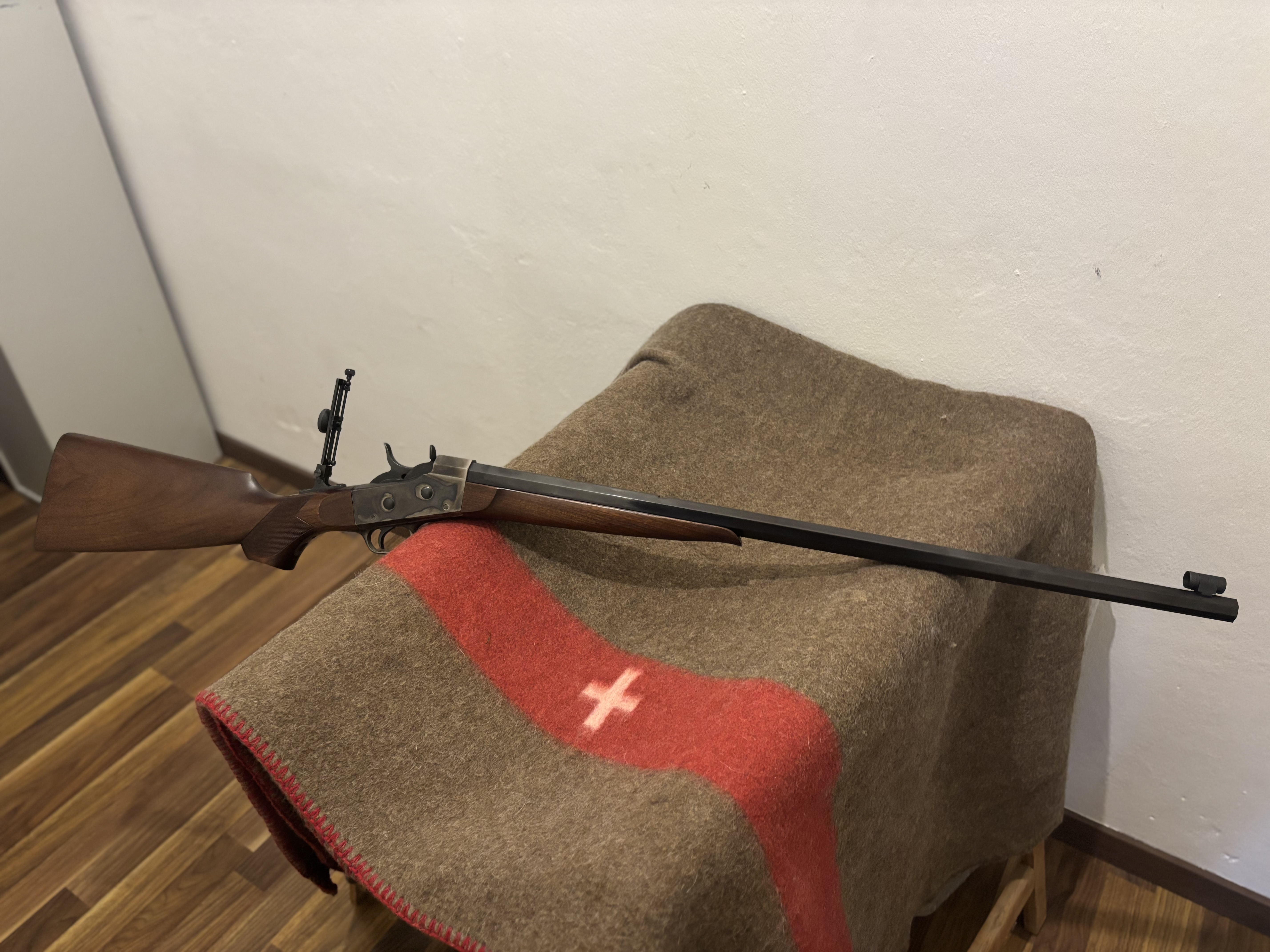 Sie bieten hier auf eine Davide Pedersoli Rolling Block Einzelladerbüchse mit Longrange/ Target Visierung, aus Nachlass