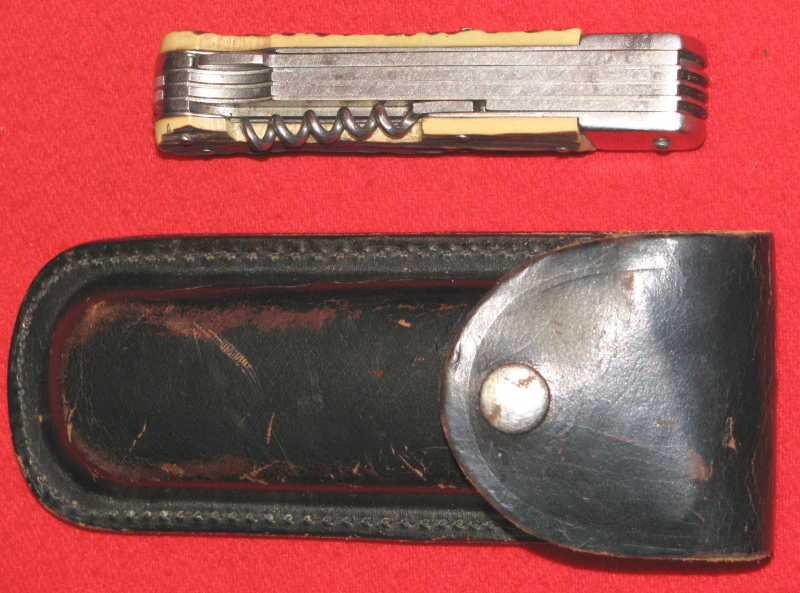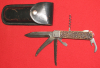 Zum Verkauf kommt ein Schönes Mikov Taschenmesser mit Horn und Lederscheide, hergestellt in CZECH REPUBLIC