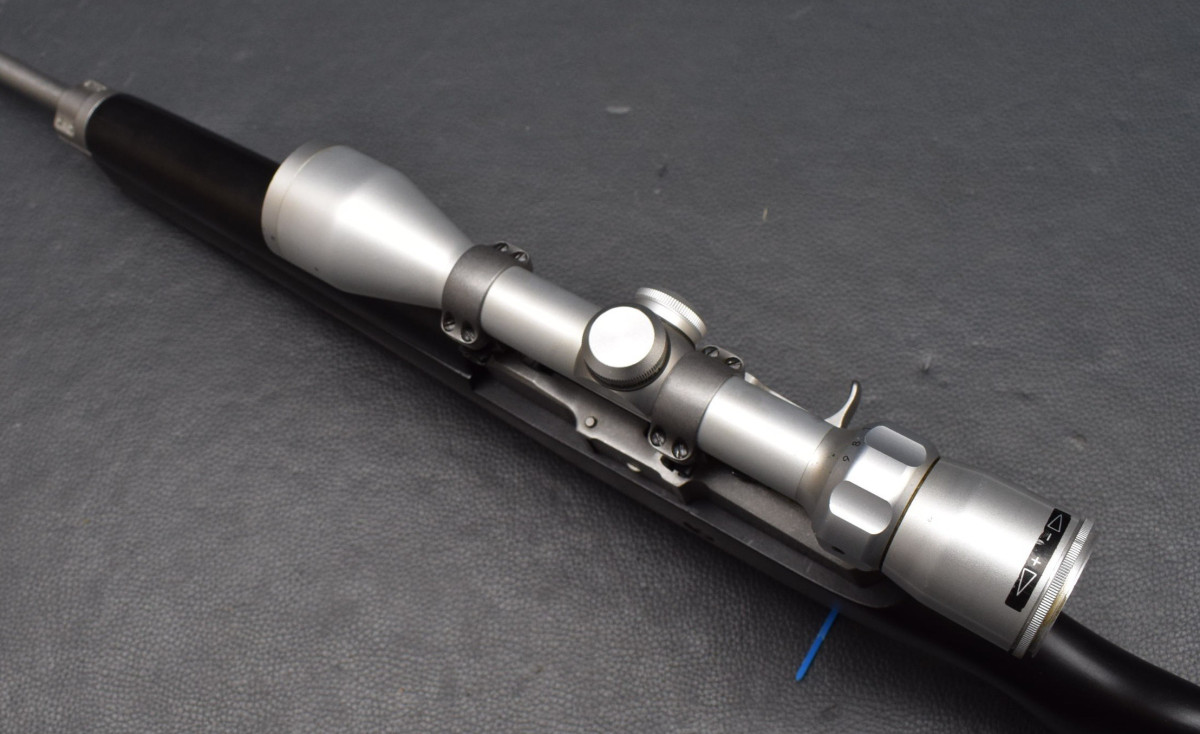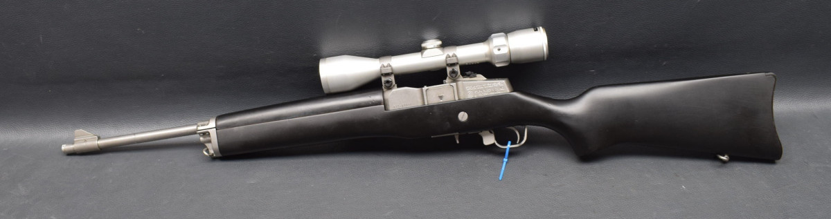Druckpunktabzug, Sicherung am Abzugsbügel, herausnehmbares 5-Schuss Magazin. Montiert mit Zielfernrohr Bushnell 3-9x40 Abs.Plexy, mittels Ruger Aufkippmontage mit 25,4mm Ringen.