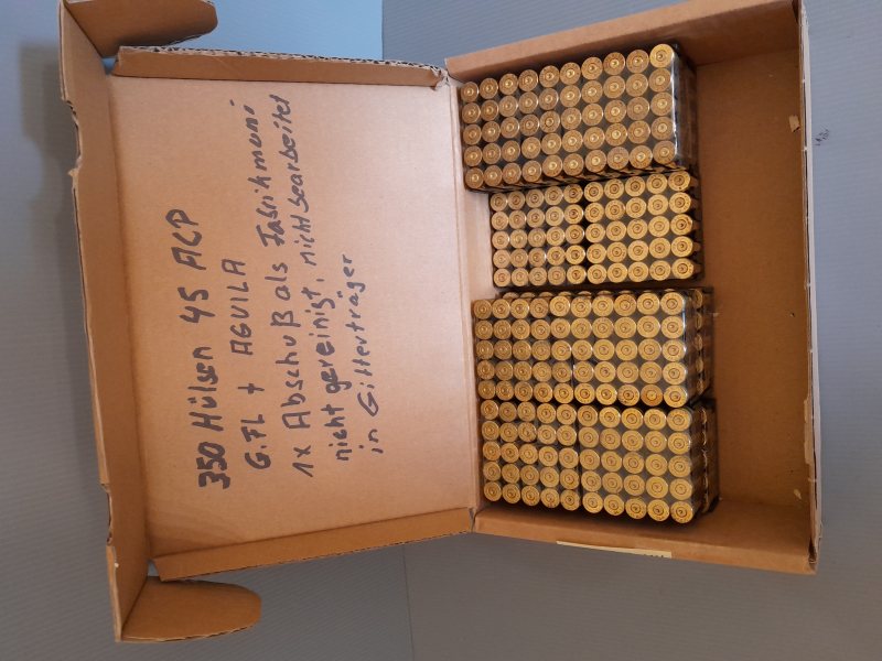 siehe Bild = Teil der Beschreibung + 50 Hülsen AGUILA 45 ACP noch dazu, habe ich in meinem Fundus noch gefunden, kein neues Bild mehr erstellt