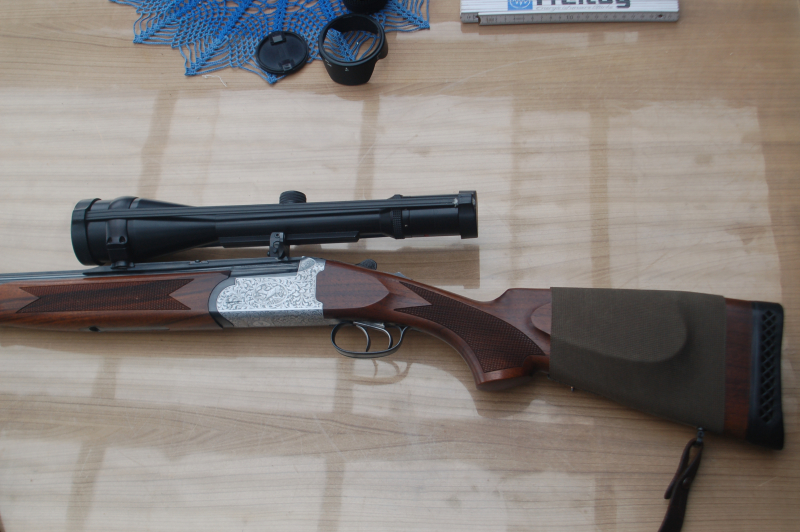 BBF Bavaria von Antonio Zoli. Kal. 30-06 Spr., 12/0 mit EL .222 Rem. Schwenkmontage mit ZF Kahles Helia L 3 -12 x 56 Abs. 1, Stahlbasküle mit floralen Motiven und Tierstücken. Sehr gepflegter Zustand der Holz- und Stahlteile. Kratzerfreies ZF in 1a Zustand, hochwertige Waffe (der Kenner weiß das). Lauflanger EL, der beim Einschießen herausgenommen werden muß. Keine Verstellung von vorne. Kaum geführt - daher Top-Zustand. Restmuni vorhanden. EWB erforderlich und muß mit scan und Tel.Nr. der Behörde mitgeteilt werden.