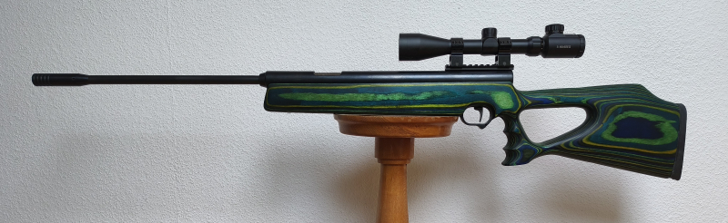 Werte Haenelfreunde, angeboten wird Haenel 312, cal. 4,5 mm mit HANDGEFERTIGTEM Lochschaft. Das System ist komplett aufgearbeitet mit neuer Manschette, Spannfeder und modifiziertem Spannhebel aus Stahlvollmaterial.Auf die Original Schwalbenschwanzführung wurde eine Weaver/ Picatinny verbaut, dadurch kann jede beliebige Zieloptik verwendet werden. Verbaut ist ein Zielfernrohr mit ROT/GRÜN-Absehen. Hervor zu heben ist der einzel angefertigte Schaft aus hochverpresstem Echtholzfurnier. Dies verleiht dem Schaft eine sehr hohe Festigkeit und Stabilität. Der Schaft ist wie alle höherwertige Schäfte nicht lackiert, sondern geölt. Wenn noch Frage aufkommen, gern melden. Wie schon erwähnt, ist dieses Gewehr ein Unikat, ein Zweites gibt es in dieser Ausführung nicht.
