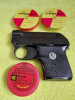 Technische Daten: Kaliber: 6 mm, Magazin-Kapazität: 6 Schuss, Länge: 112 mm, Höhe: 89 mm, Breite: 20 mm, Gewicht: 340 g. PTB-Nr. 1-71