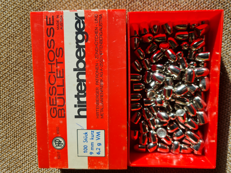 Hirtenberger Geschosse 9mm kurz. 100 stk.