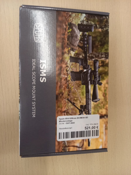 Sie bieten auf eine Spuhr QDP 4602, 34mm Durchmesser ZF, Bauhöhe 38mm (Oberkante Picatinny bis Mitte ZF), 20 MOA Vorneigung.