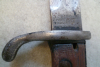 Bajonett wie abgebildet, Griffschalen gut, Klinge noch gut erhalten, Gefäß korrodiert und Drücker fest.