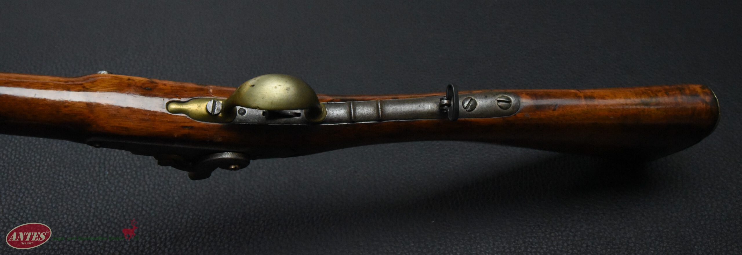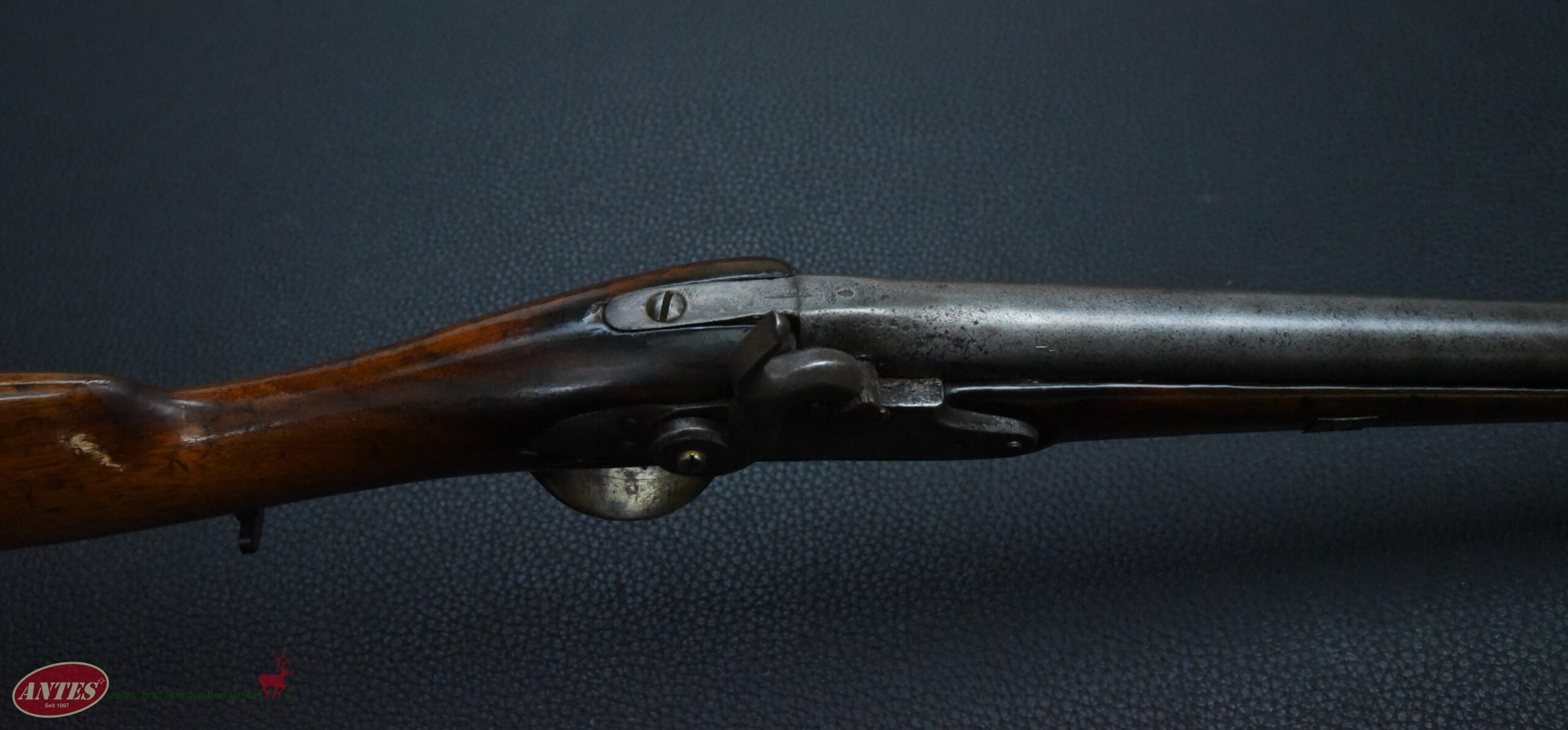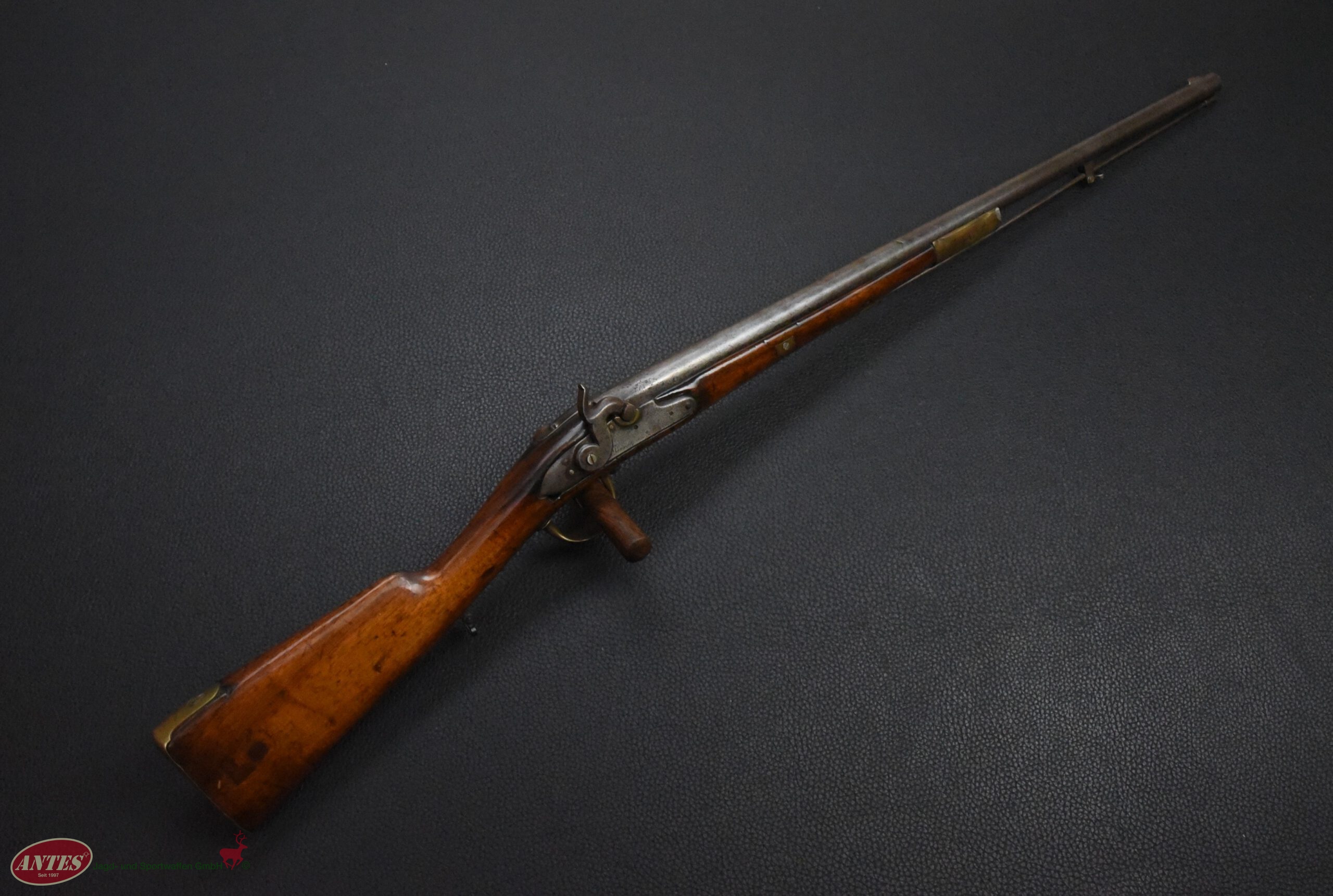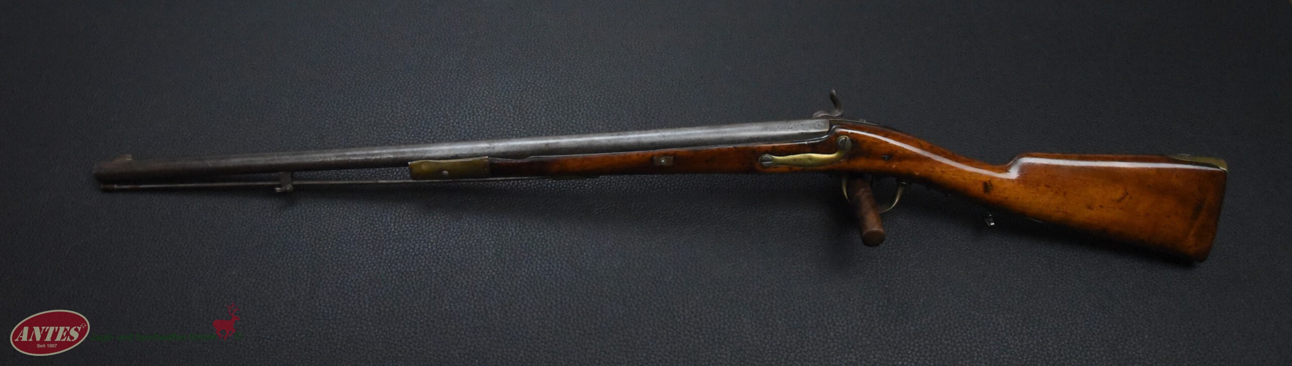 Die Waffe wurde, wie in der Zeit nach ca. 1820 oft, von Steinschloss auf Perkussions umgebaut.