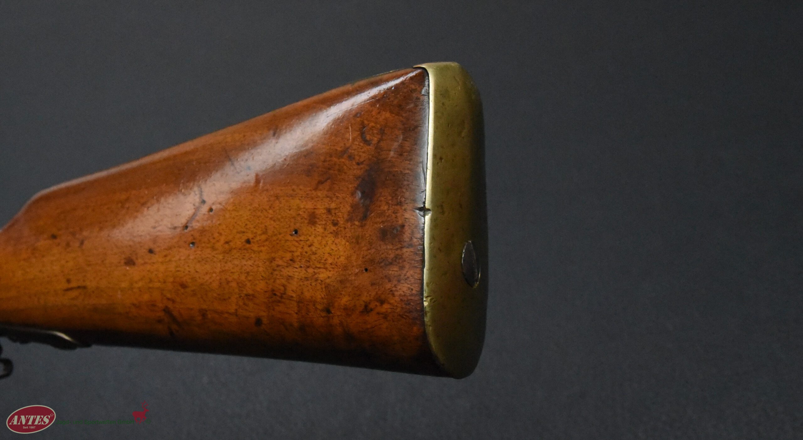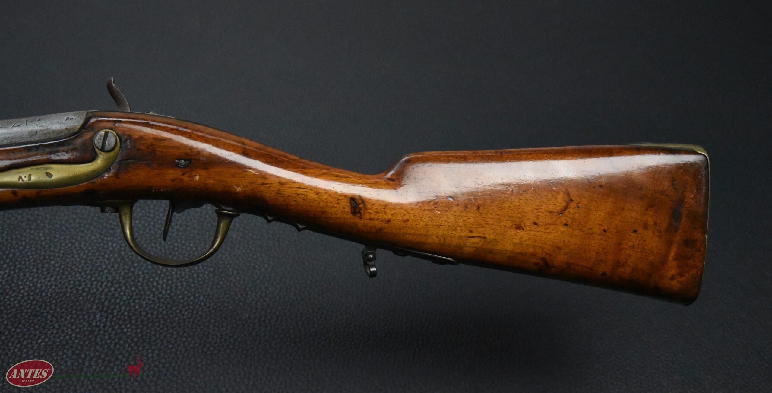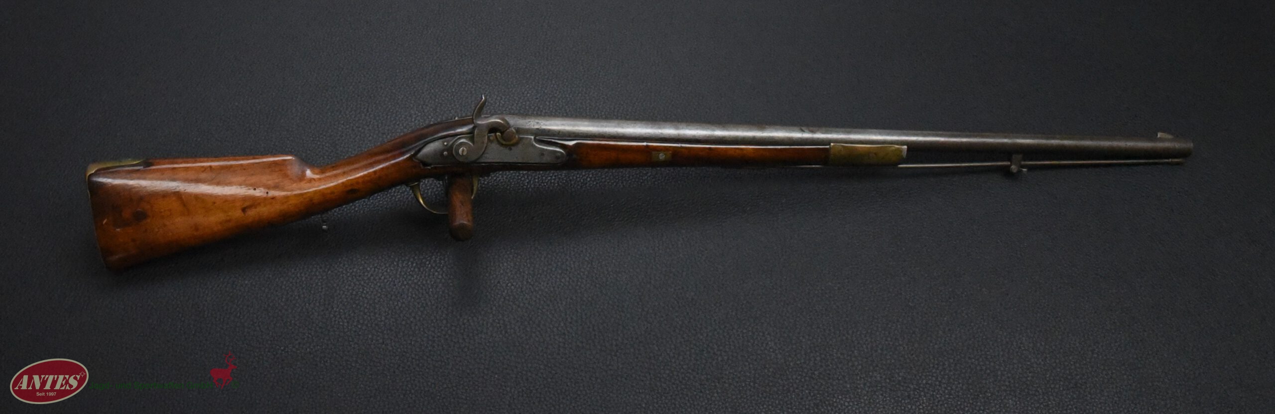 Die Waffe wurde, wie in der Zeit nach ca. 1820 oft, von Steinschloss auf Perkussions umgebaut.
