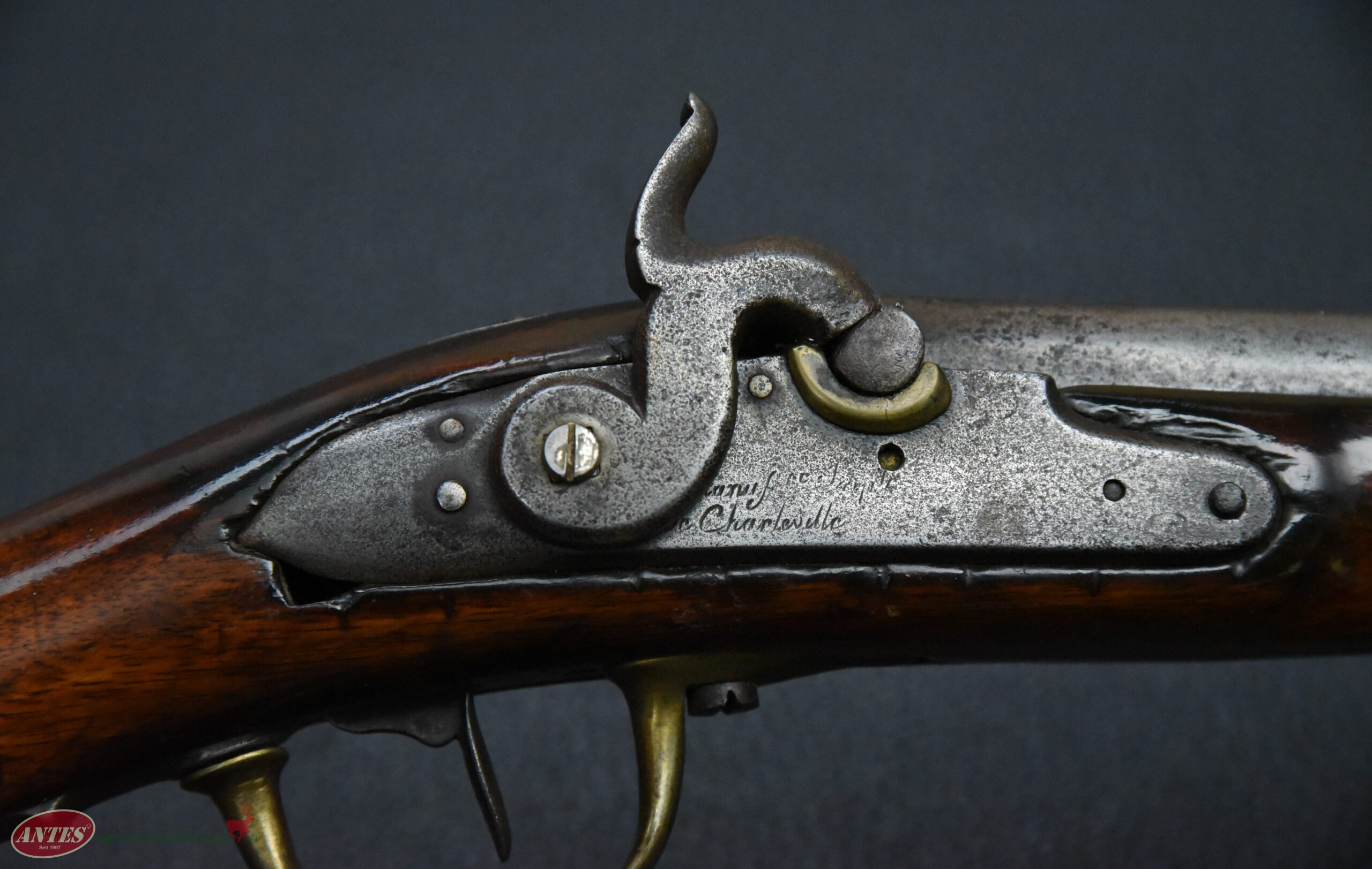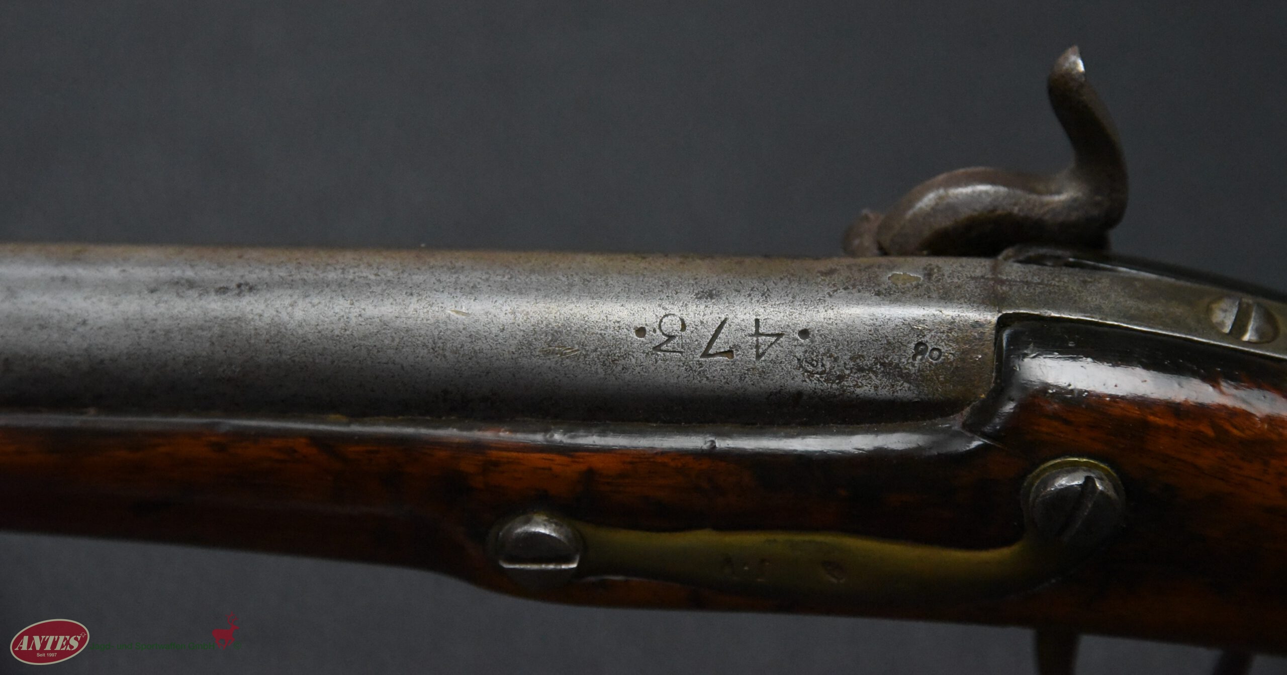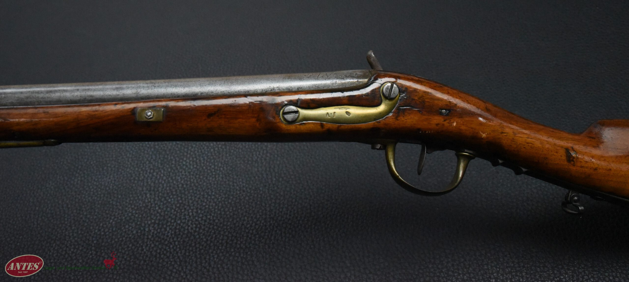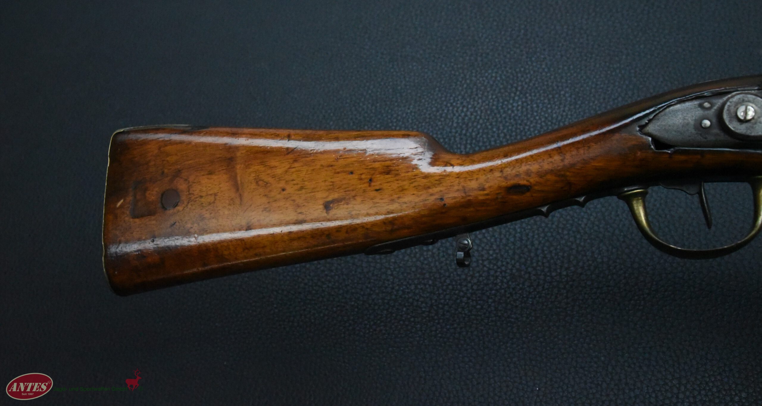 Die Waffe wurde, wie in der Zeit nach ca. 1820 oft, von Steinschloss auf Perkussions umgebaut.