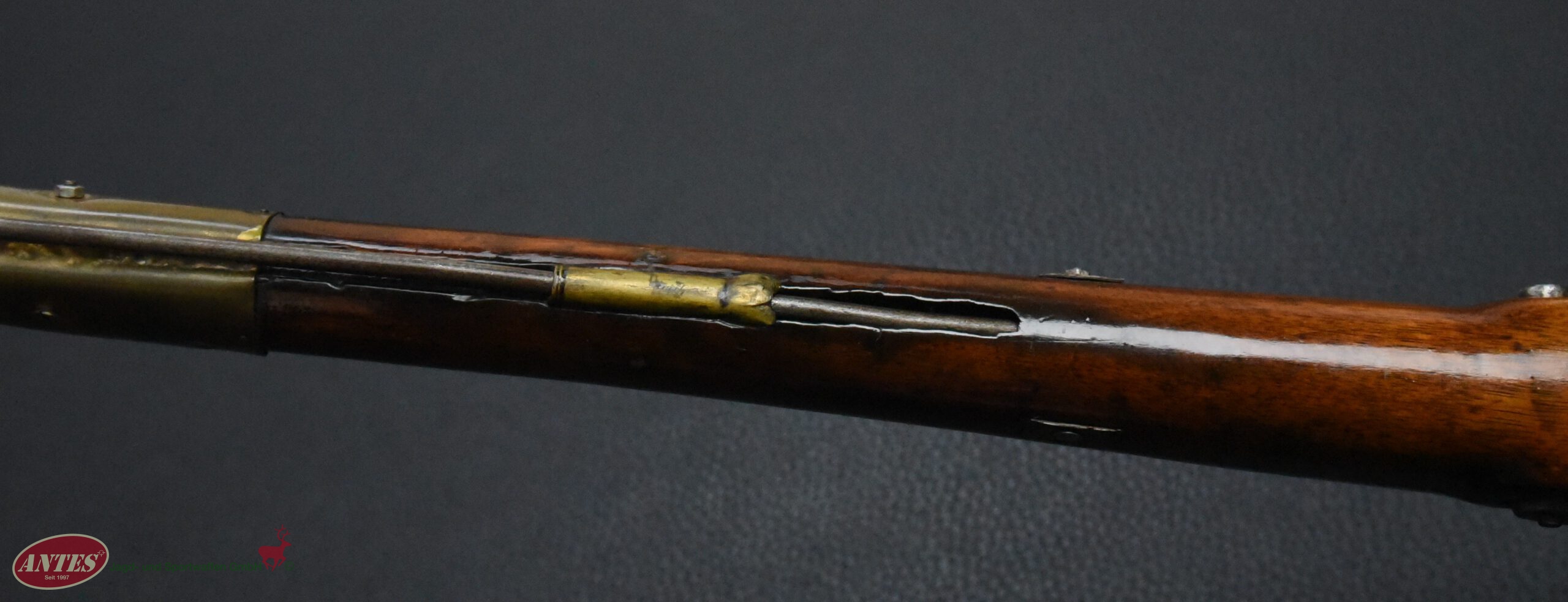 Später wurde die Waffe am Vorderschaft noch einmal verändert und mit Schrauben und Riemenbügeln aus neuerer Zeit versehen.