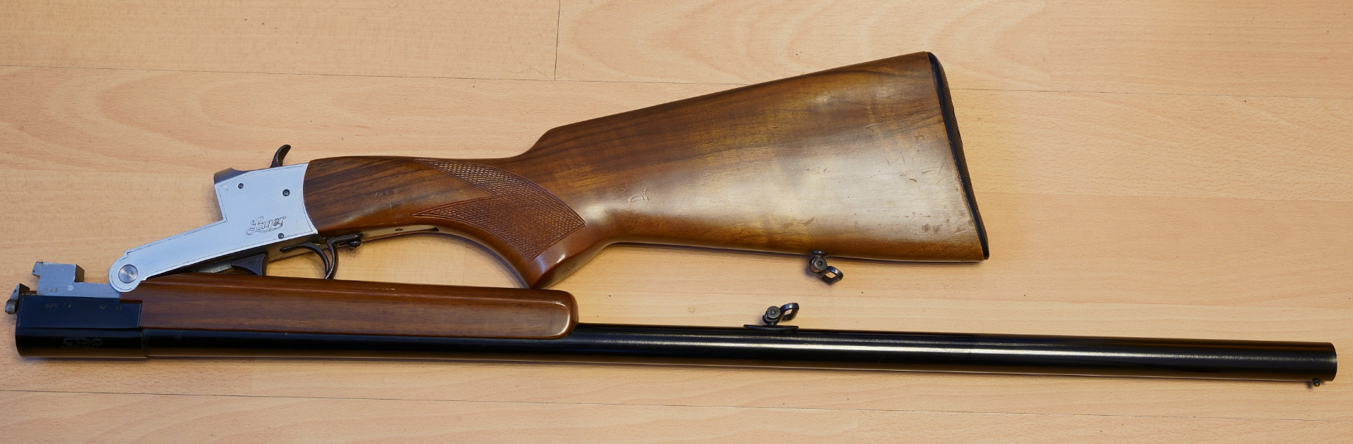 Bei der Einlaufflinte handelt es sich um eine Hahnflinte mit glattem Lauf für Schrot (ohne Beschussstempel für Stahlschrot).