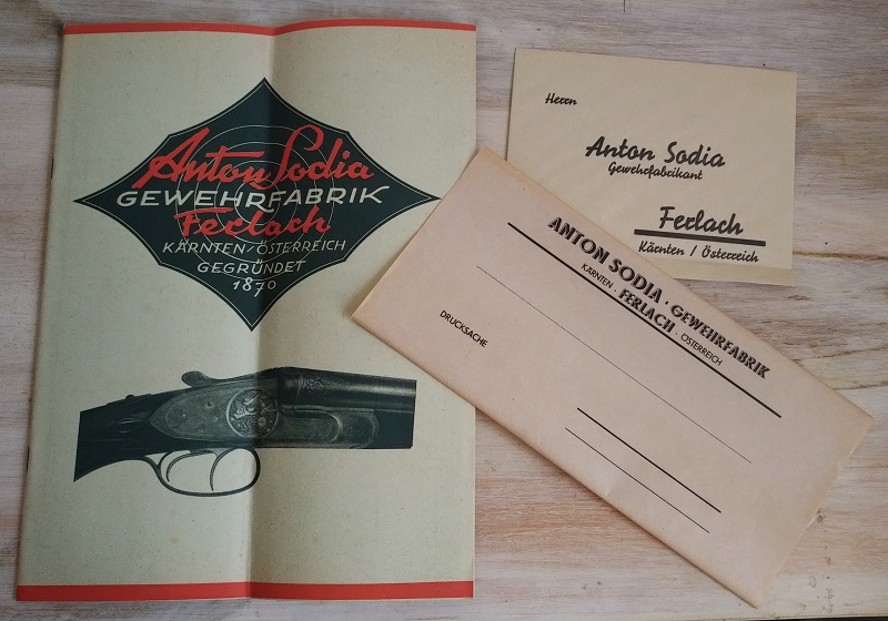 Sie bieten auf einen alten, original Katalog der Firma Anton Sodia Gewehrfabrik Ferlach/Kärnten vor 1938 (Anschluss Österreichs). Gefalteter Postwurfkatalog noch in der Original Banderole und mit dem Rücksendeumschlag innenliegend. 24 Seiten, Format A 4. Ränder gedunkelt und verschmutzt, sonst sehr guter Zustand für das Alter, siehe Photos.