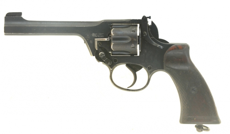 Schwere Qualität aus der frühen Kriegszeit, interessant für Sammler von alliierter Militärbewaffnung und Ordonnanzrevolvern.