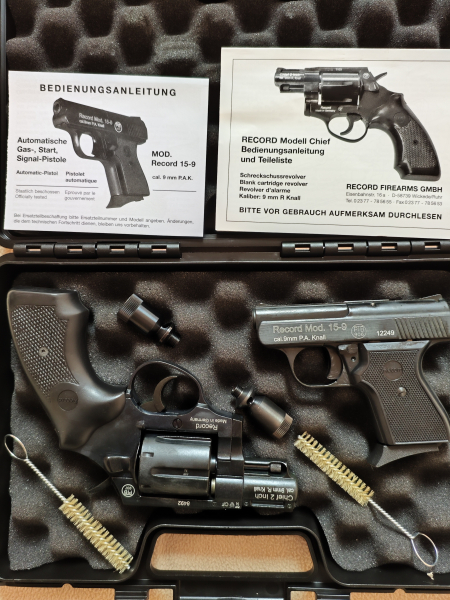 Hallo , ich verkaufe hier meinen Record Chief 2 Zoll Revolver (PTB 937) & Record Mod. 15-9 Pistole (PTB 906) im Doppelpack (Beschussjahre CF)
