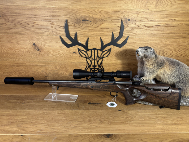 Verkauf im Kundenauftrag. Die Waffe hat lediglich leichte Gebrauchsspuren am Schaft. Lauf, Dämpfer und System sind in einwandfreiem Zustand und ohne Rost. Die Schussbelastung ist gering und unter 200 Schuss.