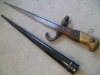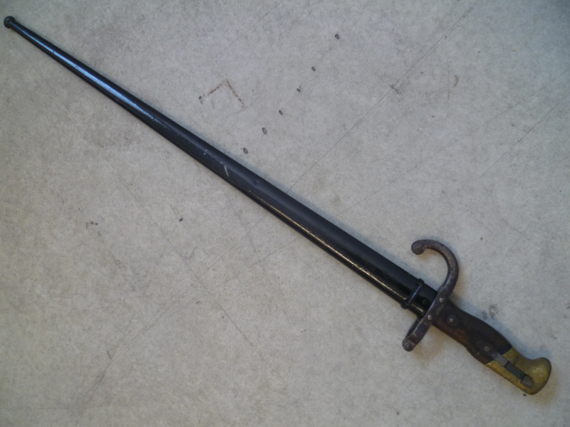 Die Stahlscheide scheint nachlackiert und ist nummerngleich zum Bajonett.