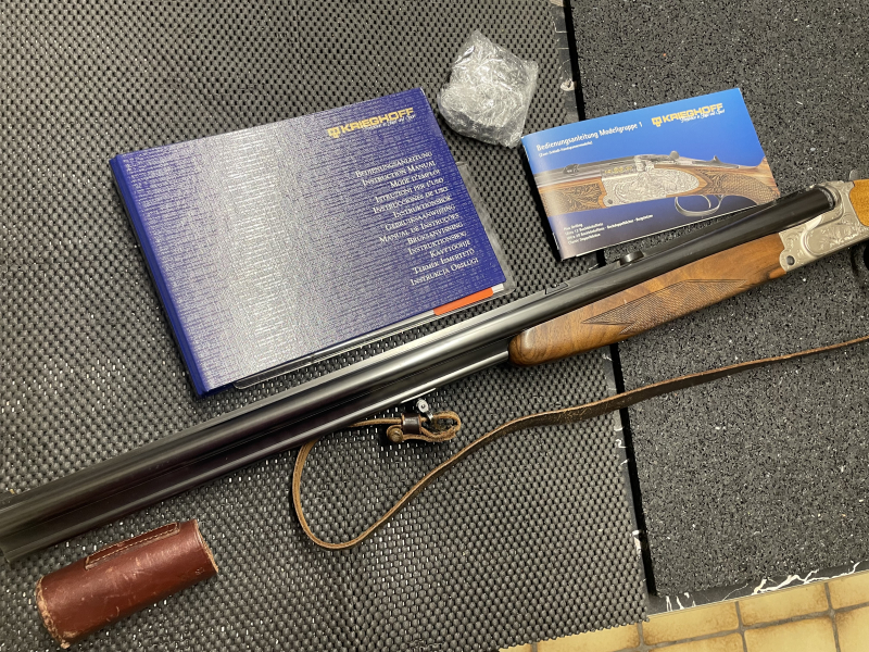 Verkaufe im Auftrag aus Nachlass Jäger einen sehr gepflegten Krieghoff Plus Drilling. Der Einstecklauf ist auf den Kugellauf eingeschossen (Anschußbild wird mitgeliefert). Orginal Papiere sind auch dabei. Leder-Mündungsschoner und Gewehrriemen werden ebenfalls mitgeliefert. Zum Lieferumfang gehören auch die Montageringe (Schwenkmontage) für ein ZF (Duchmesser vorne ca.6,2 cm, hinten ca.3,1 cm).