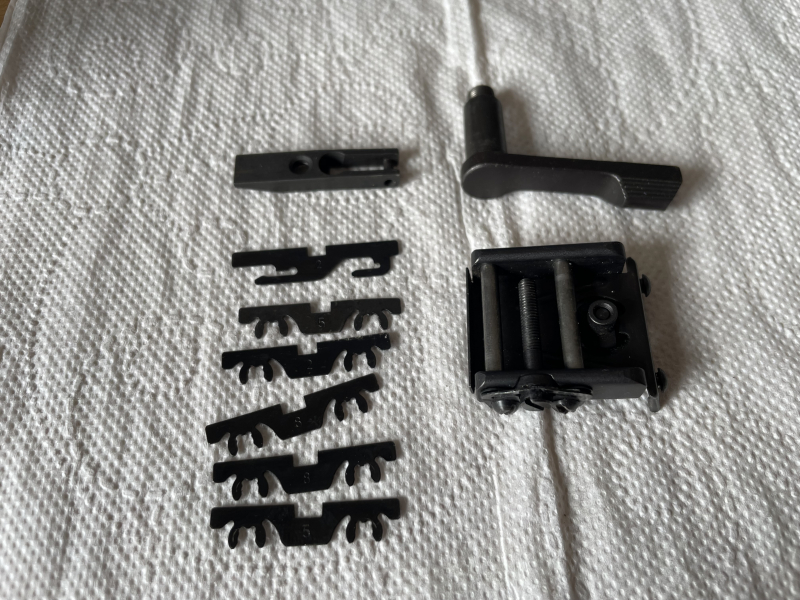 Ich verkaufe Ersatzteile für die Walther GSP : komplette Visiere , 6 stk Visiereplatte , den unteren Teil des Kornes und den seitlichen Verriegelungshebel.