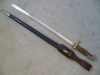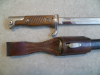Bajonett wie abgebildet, Griffschalen sehr gut, Klinge (war nie scharf) noch gut erhalten, ein paar kleine Oxidationsspuren, Drücker funktioniert.