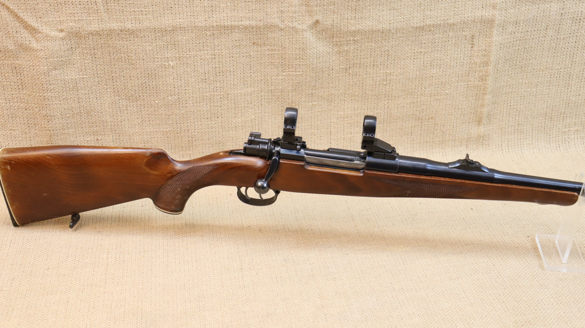 Die Büchse ist technisch einwandfrei und hat einen blanken Lauf. Die Brünierung hat leichte und der Schaft stärkere Gebrauchsspuren. Waffe wie abgebildet, mit Montage (Ringe 1 Zoll), ohne weiteres Zubehör. Die Versandkosten gelten nur für Deutschland, Auslandsversand bitte anfragen.