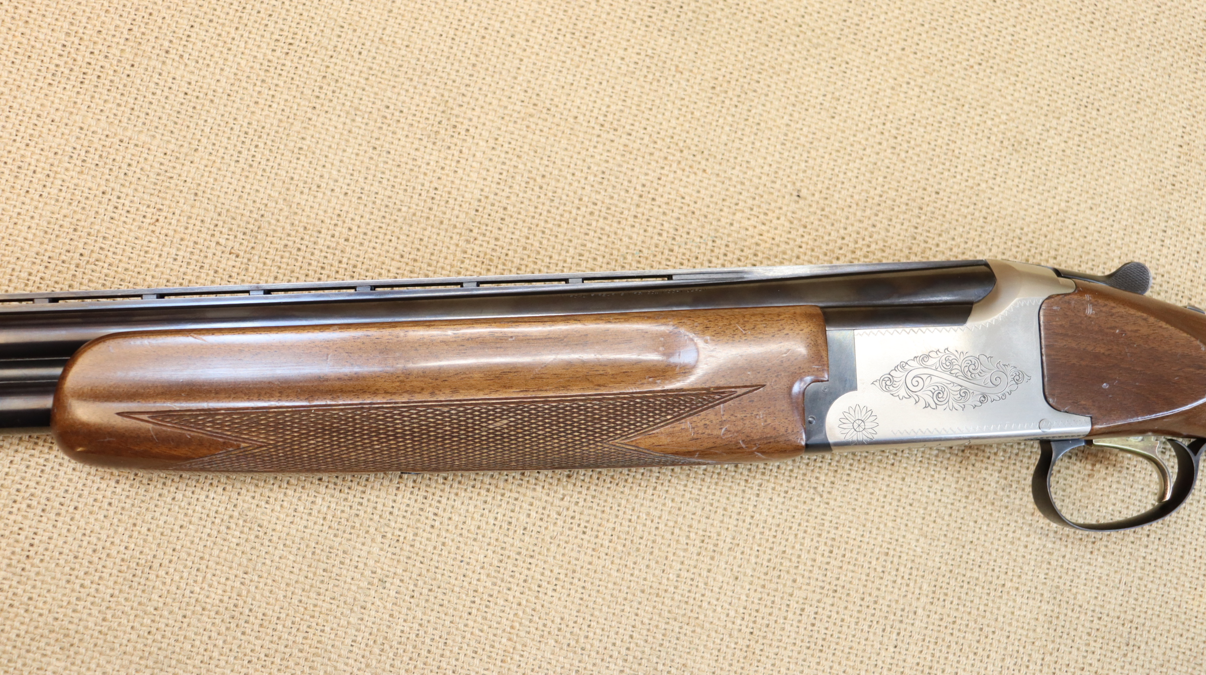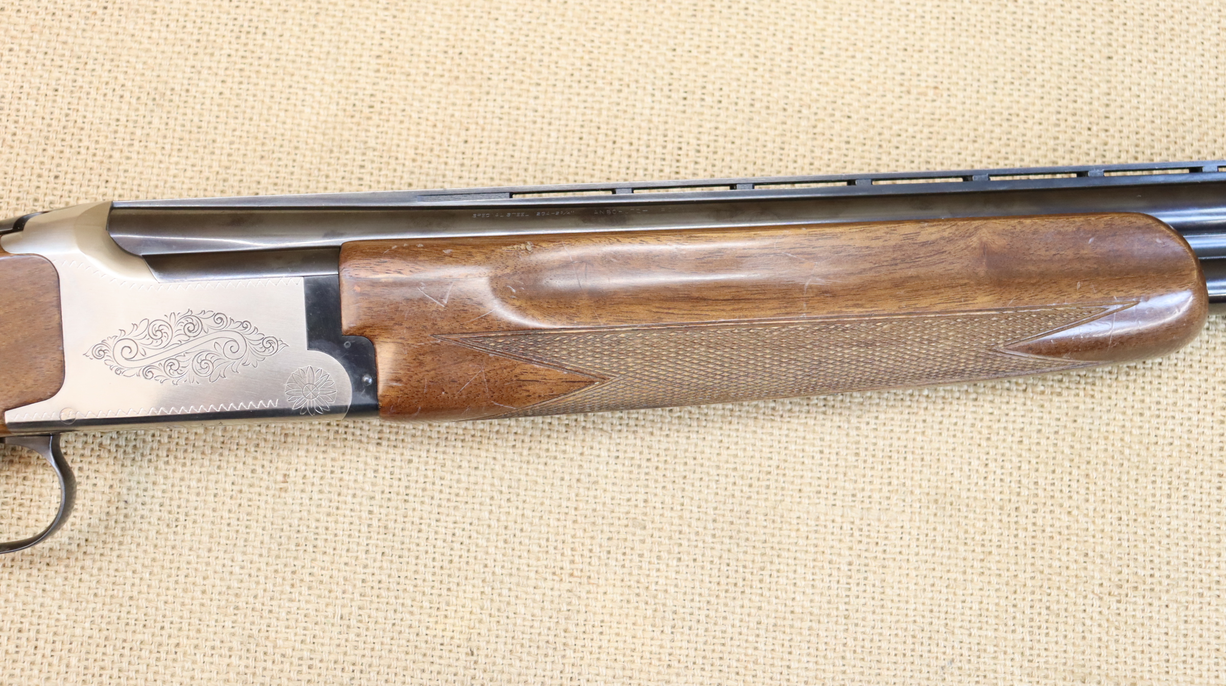 Die Flinte ist technisch einwandfrei, hat einen Ejektor und blanke Läufe. Die Brünierung hat leichte und der Schaft starke Gebrauchsspuren, mit vielen Kratzern und Macken. Lauflänge 71 cm, Schaftlänge 36,5 cm. Choke 1/1 u. 3/4 * / ** . Die Waffe wie abgebildet geliefert, ohne weiteres Zubehör. Die Versandkosten gelten nur für Deutschland, Auslandsversand bitte anfragen.