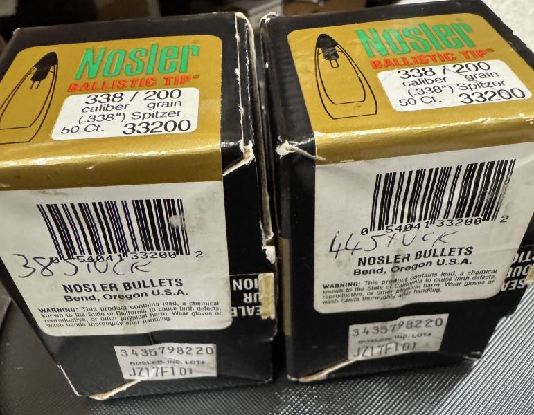 zum Verkauf stehen aus Wiederlader-Nachlass 82 x Geschosse Nosler Ballistic Tip (Art. Nr.: 33200) .338 - 200 grain schwer. Es sind zwei angebrochene Päckchen.