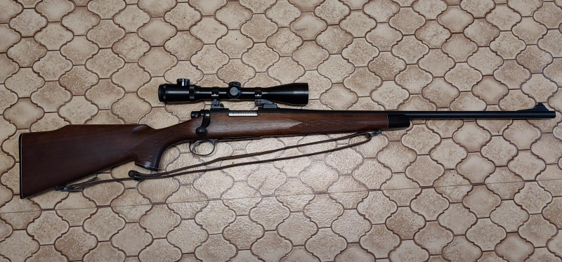 Sie bieten auf eine Repetierbüchse Marke Remington Mod. 700 im Kaliber .17 Remington. Auf der Waffe ist per EAW-Schwenkmontage ein Micro DOT Zielfernrohr 3-9x40 mit Absehen 4 und Leuchtpunkt montiert. Das Glas sowie die Büchse weißen minimalste Gebrauchsspuren auf. Die Waffe hat eine sehr gute Schussleistung und der Abzug bricht trocken. Die Waffe hat eine Gesamtlänge von 110cm und eine Lauflänge von 60cm. Die Schaftlänge bis zum vorderen Abzug beträgt 34cm. Das Magazin verfügt über einen Klappdeckel und kann so schnell entladen werden. Schaft mit Monte-Carlo Backe und Ebenholzabschluss am Vorderschaft.
