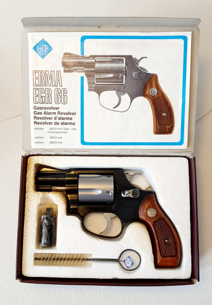 Biete hier eine absolute Rarität an! Es handelt sich um einen Erma EGR 66 Revolver mit Edelstahltrommel in seidenmatt vom EGR 66 X. Des weiteren sind auch der Hahn, der Abzug, der Trommelschieber sowie sämtliche Schrauben und Innenteile aus Edelstahl. Die Edelstahlteile habe ich Seinerzeit als Ersatzteile bei der Firma CD-Ehrenreich neu gekauft! Original S&W Griffschalen runden das Gesamtbild dieses einzigartigen Revolvers ab. Alle Teile passen perfekt zusammen und die Trockenfunktion ist einwandfrei! Das Set ist bis auf die Garantiekarte komplett, aber nicht nummerngleich. Die Fotos sind Bestandteil der Auktion.