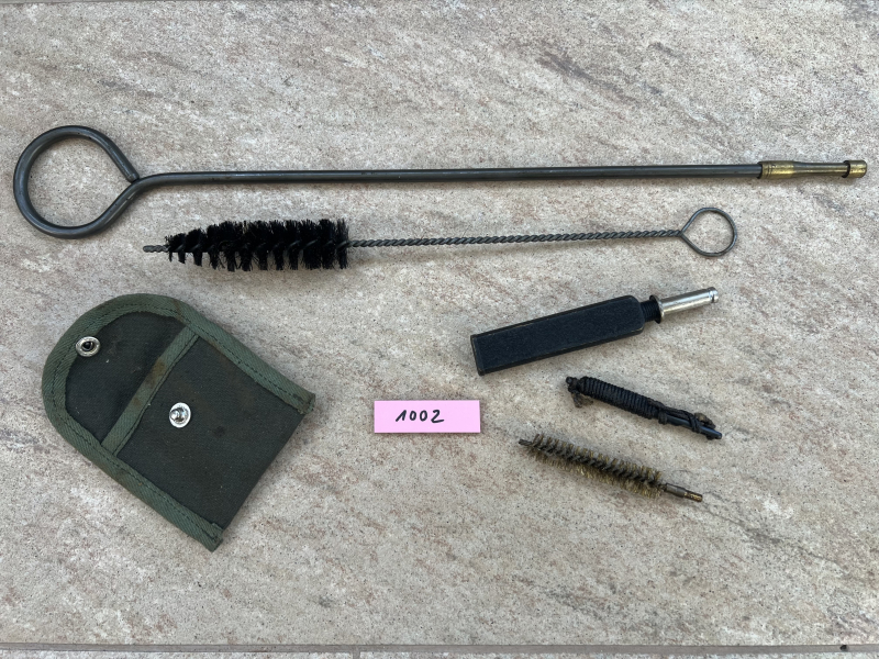 Sie bieten hier auf ein Reinigungsset für die MP Thompson 1928A1 / M1 / M1A1 der US-Army. Guter Zustand mit Lagerspuren, siehe Foto. Der Öler (seltene frühe Ausführung) kommt hinten in den Schaft der Thompson MP. An den Stücken haftet noch das originale Konservierungsfett. Das abgebildete Set wird auch geliefert.