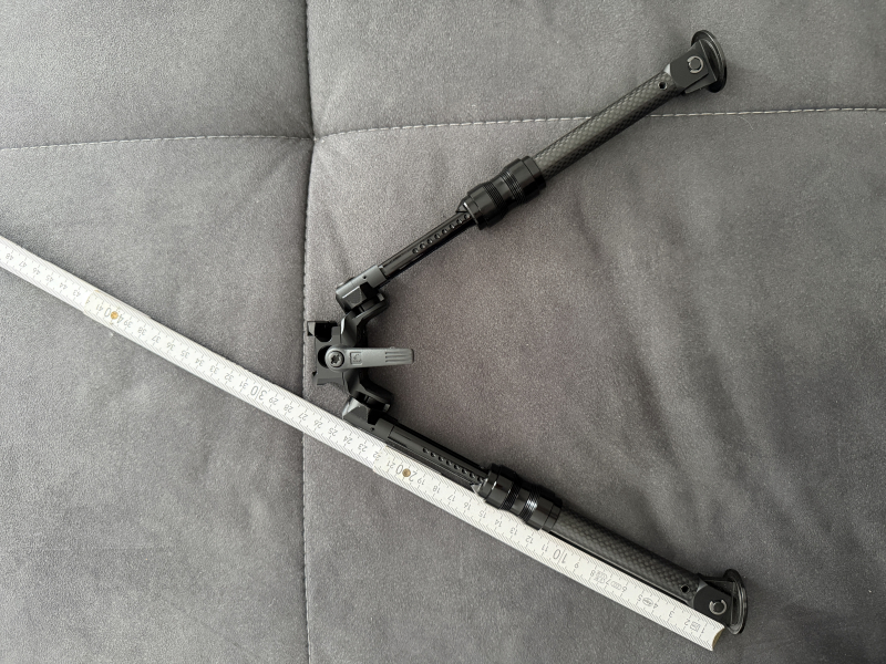 Kombinationszweibein aus Aluminium / Karbon für extreme Stabilität und Belastbarkeit Ideal für Longrange, Jagd, kurze und lange Distanzen In 12 Stufen in der Länge durch Schnellverstellung justierbar 3 Aufnahmen (Universalaufnahme) ParkerHale / VersaPod / Fortmeier Picatinny-Schiene Auf 12 Uhr montieren 90° klappbar MASSE: siehe Bilder VERSTELLBEREICH LÄNGE: 60 mm GEWICHT: ca. 430 g KALIBER: 222 Rem. - 408 CT Auswechselbare Beine / Füße