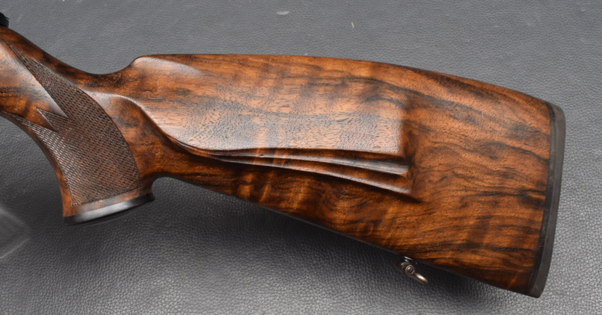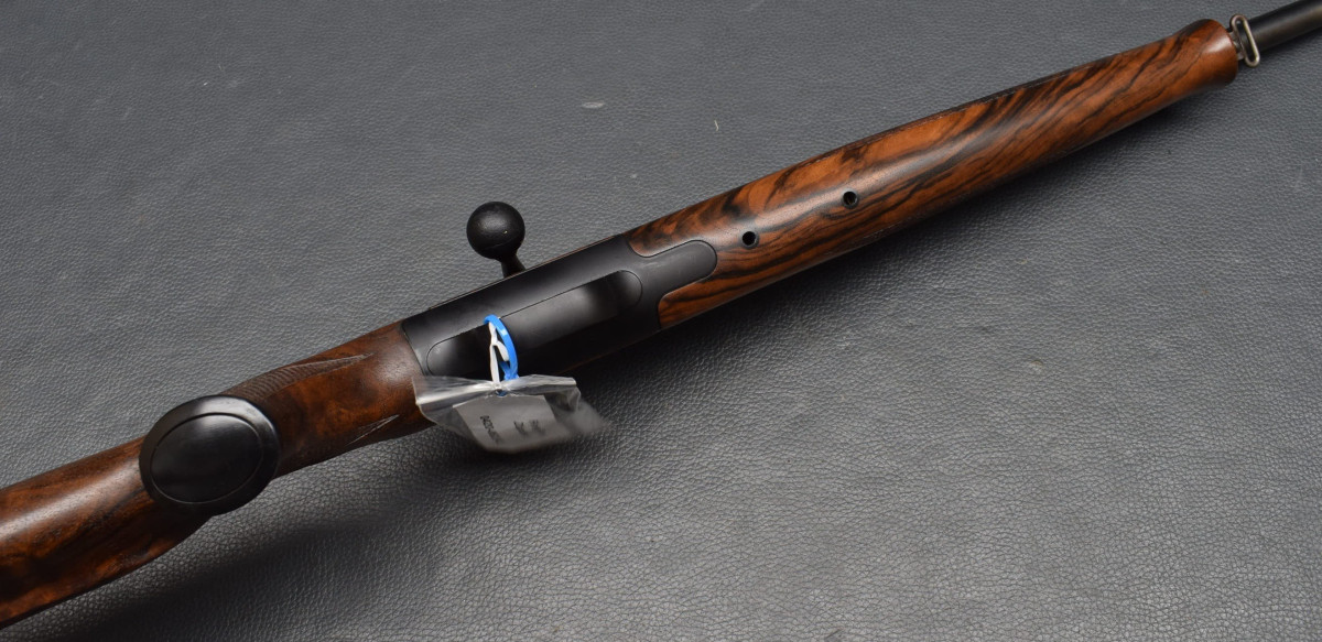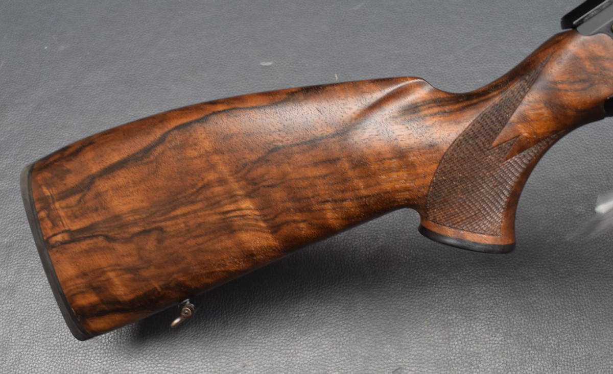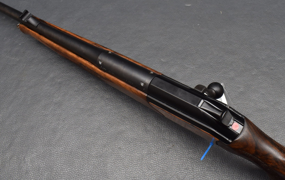 Systemrücken, Kammergriffkugel aus Kunststoff, Direktabzug, 4 Schuss Einsteckmagazin Walnussholz, gummierte Schaftkappe, bayrische Backe mit doppelter Falz,