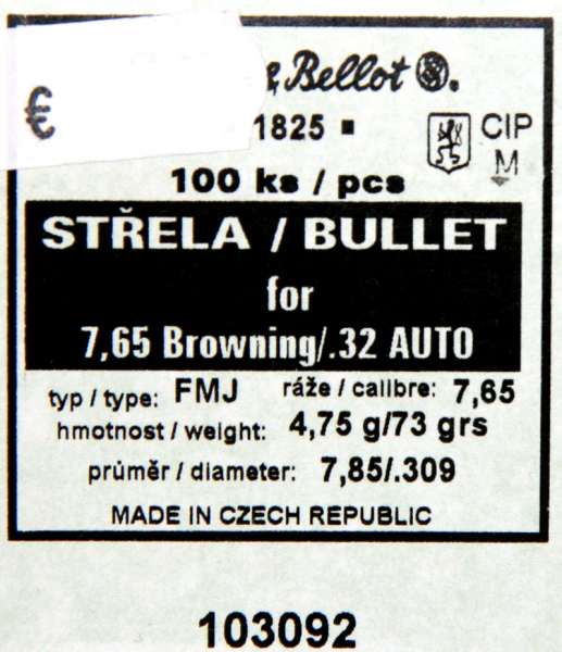 RECOMMENDED FOR....:....... 7,65 Browning / .32 Auto