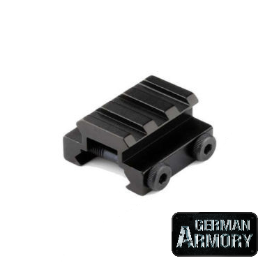 Wetterbeständiges, beschichtetes Aluminium (Schrauben aus Stahl), Schussfest und verlässlich. Optimal um die Visierlinie von Optiken um 13mm zu erhöhen.