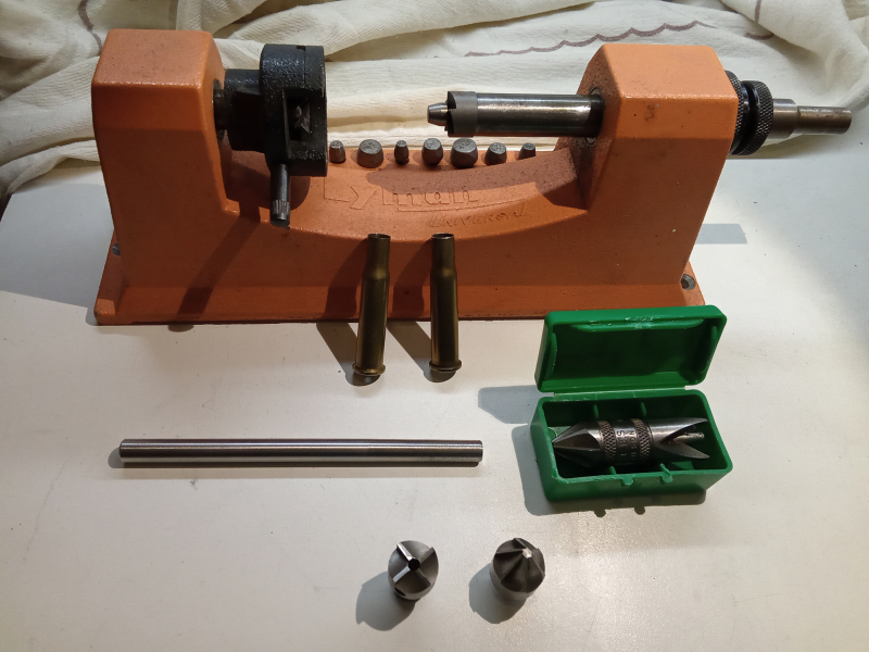 Der montierte Fräskopf ist ganz wenig gebraucht. Im Lieferumfang ist noch ein Hülsenentgrater I und A, sowie Richtdorn aus Edelstahl für das cal. 30/30 . Da private Auktion kein Umtausch, keine Garantie oder Gewährleistung, viel Spaß beim Bieten
