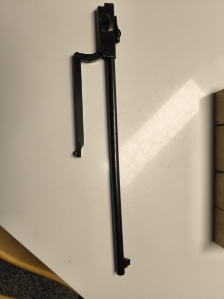 Verkaufe einen Lauf mit kompletter Spannschiene für ein Haenel III 284, Brünierung ist in ordentlichem Zustand, Mechanik leichtgängig, mit Korn ohne Schutz, Kimme ohne Hohenversteller, altersgemäße Abnutzungen siehe Bilder, der Lauf ist frei aber verzogen!